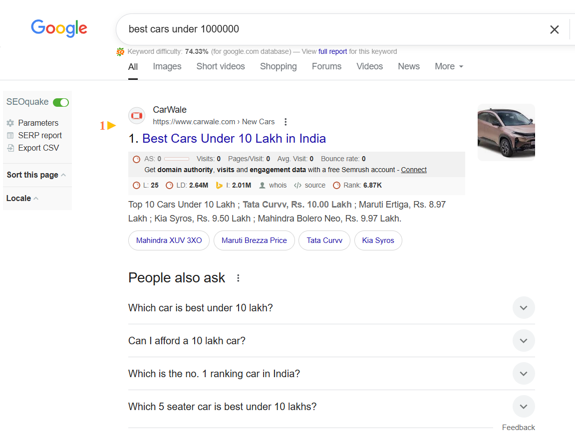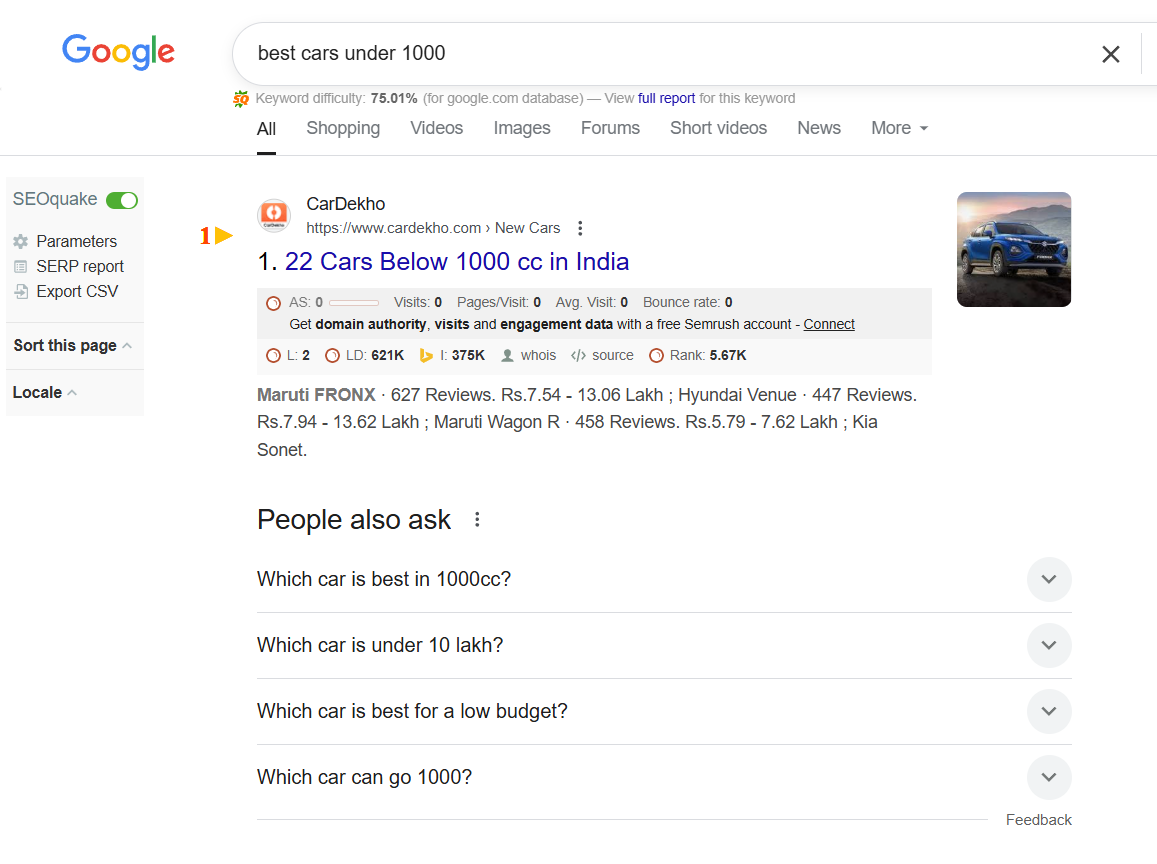 Looking at from user pov, you can understand what they actually wanna see after typing in their query and hitting the search button. For example, If a searcher has entered “Best cars under 1,000”, he is clearly trying to buy a car under 1000cc or at most want to know what the best possible option is there under that value.