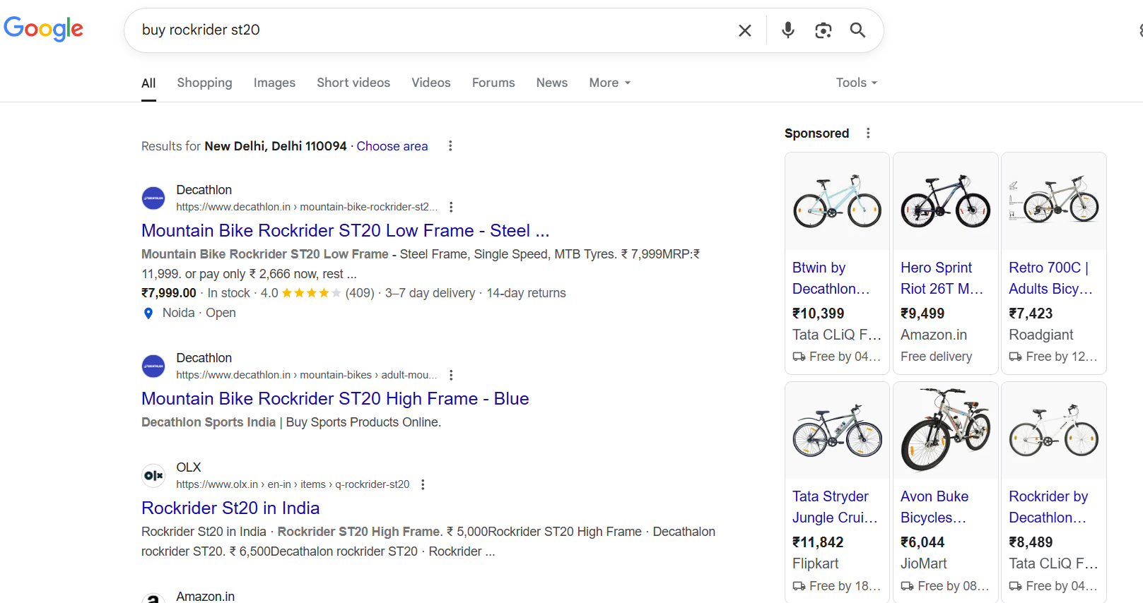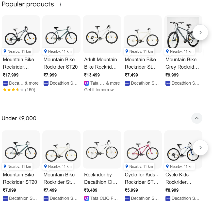 Decathlon own website is ranking for the keyword with the the product which is closest to the value and if you have ever purchased such products from a big brand, it is the minimum value you will be playing not including taxes, accessories, logistics and my theory has proven right in the next step.